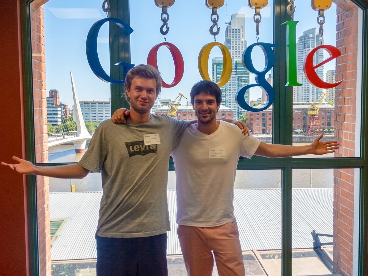 Lucas Frigerio «encargado de diseño» y Sebastián Cruz «encargado de programación» en las oficinas de Google Buenos Aires.